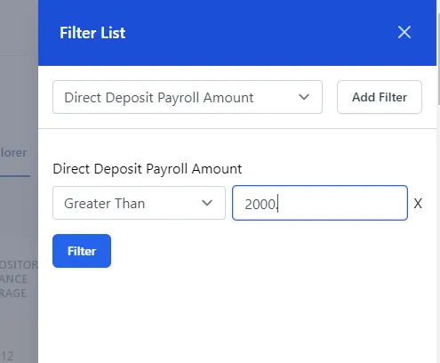 When you click Filter List, you’re given a drop down of all Report Card elements that you can choose to include in your filter and any variables related to them. This can create a curated list of applicants to view how different applicant requirements could effect your sales outcomes.